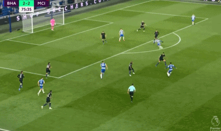 第56分钟,曼城遭遇重创,京多安受伤被费尔南迪尼奥换下。第62分钟,特罗萨德传球,本怀特禁区右侧右脚打门被封堵。第72分钟,格罗斯右路弧线球挑传禁区,韦伯斯特头球抢点破门,布莱顿扳平比分,2-2!第75分钟,马赫雷斯禁区外左脚远射被桑切斯化解。