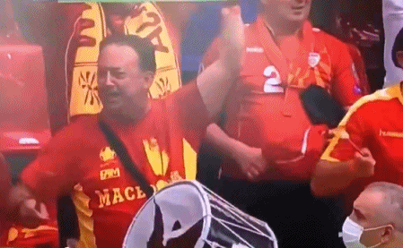 比赛中,一位北马其顿大叔擂鼓为球队加油,鼓都敲破了依然不肯停下。对于人口只有200万、此前从未参加过欧洲杯的小国北马其顿来说,每一场比赛、每一个进球都弥足珍贵。