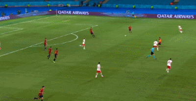第25分钟,莫雷诺在禁区内右侧的斜塞,莫拉塔在禁区中路得球后起脚抽射,皮球入网,但是主裁示意莫拉塔越位在先进球无效,而视频裁判在观看视频回放后认定莫拉塔没有越位,进球有效,西班牙1-0波兰。