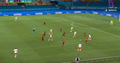 第72分钟,萨拉维亚主罚禁区右侧的任意球,任意球送入禁区,什琴斯尼将皮球打出。第73分钟,马科斯-略伦特禁区右侧传中,费兰-托雷斯禁区中路头球,皮球偏出右侧立柱。第80分钟,莫拉塔在禁区内中路接到队友的传球,转身抽射,被封堵。第81分钟,罗德里禁区内右侧的大力抽射,角度太正,被门将没收。第83分钟,阿尔巴前场左侧的挑传送入禁区内,萨拉维亚将球给了莫拉塔,莫拉塔单刀机会,面对门将的抽射被封堵。全场比赛结束,西班牙在先入一球的情况下被波兰逼成1-1平局。