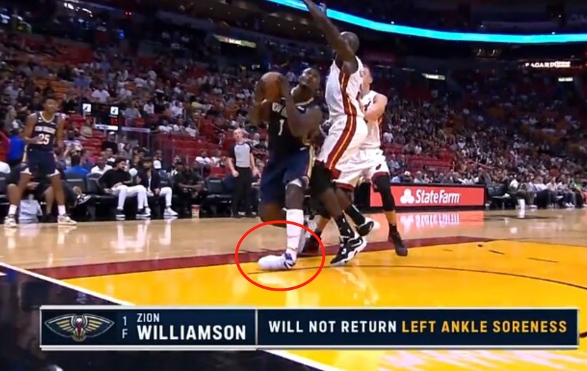鹈鹕球星锡安在上半场比赛的一次突破中扭伤了左脚踝。随后鹈鹕官方宣布,锡安因左脚踝酸痛本场比赛将不会回归。