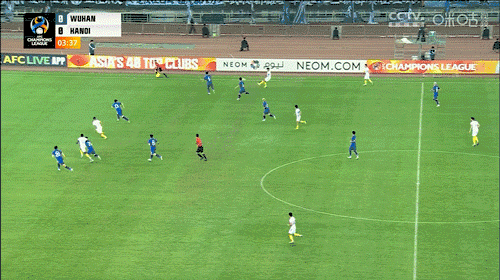 比赛一开场,河内后场长传,前锋塔格乌停球时踹到了高准翼头上,主裁判直接出示红牌将塔格乌罚下!河内十人作战!