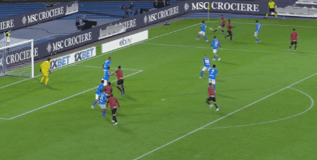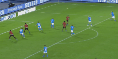 第50分钟,迪洛伦佐挑传,波利塔诺连过两人,左脚抽入上角,那不勒斯1-2。
