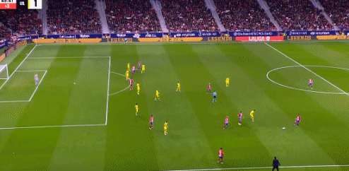 第45+1分钟,格列兹曼下底横传,维特塞尔包抄破门!马竞1-1比利亚雷亚尔