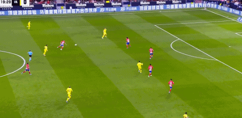 第20分钟,瑟洛特劲射被扑,莫雷诺补射打入死角!马竞0-1比利亚雷亚尔