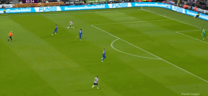 第61分钟,两分钟两球!蒂亚戈-席尔瓦后场失误,乔林顿破门,纽卡3-1
