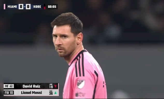 nba直播讯 迈阿密国际vs神户胜利船的比赛中,梅西下半场第60分钟替补登场。
