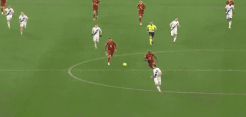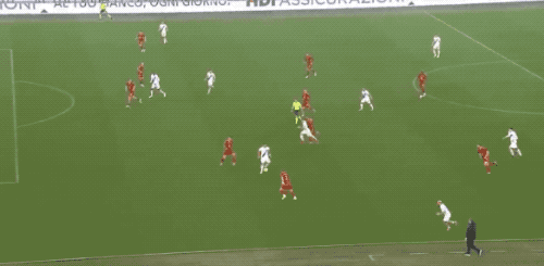 第45分钟,佩莱格里尼推进后分到禁区左侧,沙拉维推射中柱反弹入网,罗马2-1!