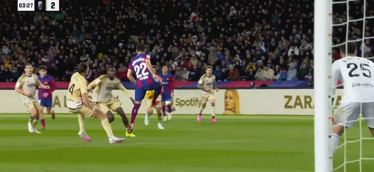 第43分钟,佩利斯特里右路传中,里卡德-桑切斯抽射破门!格拉纳达1-1!
