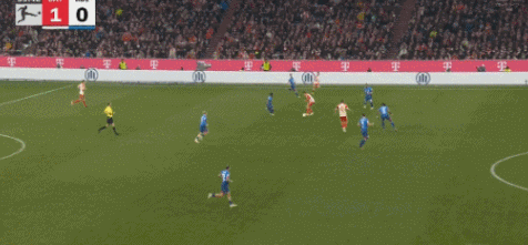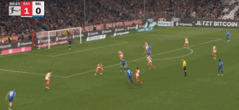 第91分钟,舒波-莫廷把球给到禁区,凯恩凌空打门得手,帮助拜仁2-1完成绝杀。