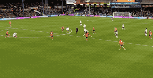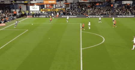 上半场结束前,卢顿扳回一城,克拉克禁区外的远射划过一道美妙的抛物线,直挂死角,一记精彩的世界波,将两队的半场比分定格为3-1