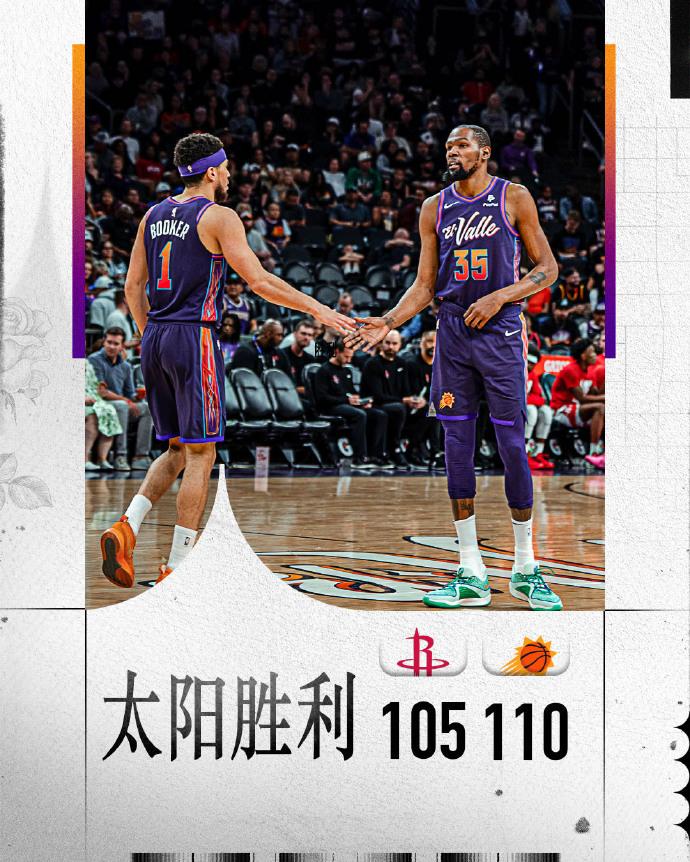 NBA-太阳110-105火箭 布克35+7 KD24+7+6 杰伦-格林34+5
