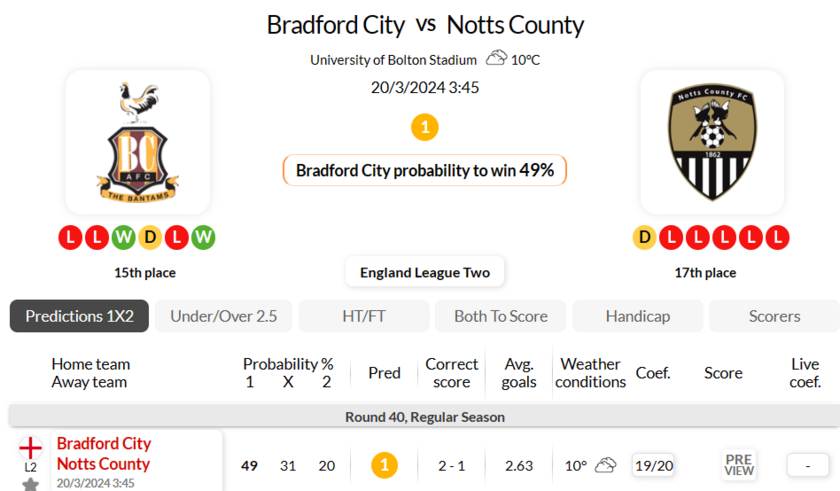 Bradford City have won just 2 of their last 11 matches against Notts County in all competitions