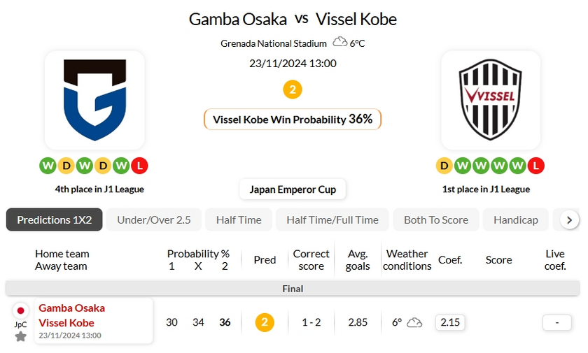 There have been over 2.5 goals in 6 of the latest Emperor Cup matches of Gamba Osaka