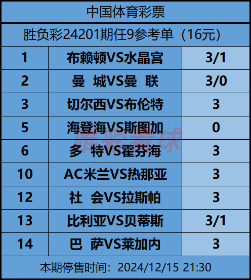 姜山:确实,布赖顿现在的伤病情况很要命,主力中卫韦伯斯特、主力右后卫维尔特曼以及两名左后卫欣舍伍德、卡迪奥格卢都因伤缺阵,另一名主力中卫邓克也是刚刚伤愈复出,状态也不理想。所以这一阶段,布赖顿的防守压力很大,面对南安普敦和莱切斯特城这两支保级球队,他们也是难求一胜。尤其是上轮做客莱切斯特城,在2比0领先的情况下,布赖顿却在最后阶段未能守住,被对手在第86分钟和第91分钟连进两球完成绝平,替补登场的中卫伊戈尔铸成大错,而进攻端佩德罗、三笘薰、弗格森等人也是状态低迷,进球还是靠右后卫兰普泰以及替补登场的右边锋明特,所以布赖顿的状态还是很令人担忧。水晶宫则处于一个上升期,近期2胜4平1负,只在主场不敌富勒姆,但击败热刺、逼平曼城、维拉和纽卡,表现可圈可点。水晶宫目前阵容也很整齐,只有主力中场沃顿有伤。在走出了奥利塞、阿尤、爱德华多等攻击手转会给球队带来的困境之后,水晶宫又有点找回上赛季“快打黑旋风”的意思,马特塔、萨尔、埃泽重塑了“黑色三叉戟”。尽管布赖顿过去两个赛季都在主场击败了水晶宫,但他们本赛季在主场面对曼联、热刺、曼城能够取胜,但对阵伊普斯维奇、狼队、南安普敦这三支倒数后3名球队却全部战平,说明布赖顿在主场只适合打防反,而在面对阵地战时往往进退失据。反而是水晶宫本场可以在客场舒服地施展自己的防反战术,这场比赛,平局肯定是值得重点关注的,双选3/1吧。
