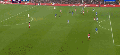 第23分钟,右路马丁内利传中到禁区被解围,左侧特罗萨德得球突破下底横扫门前,哈弗茨跟进破门,阿森纳1-0领先!