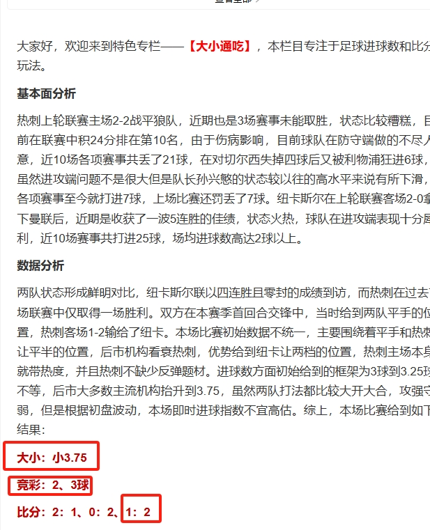 大小通吃昨日成功预测本场比赛比分,精准命中