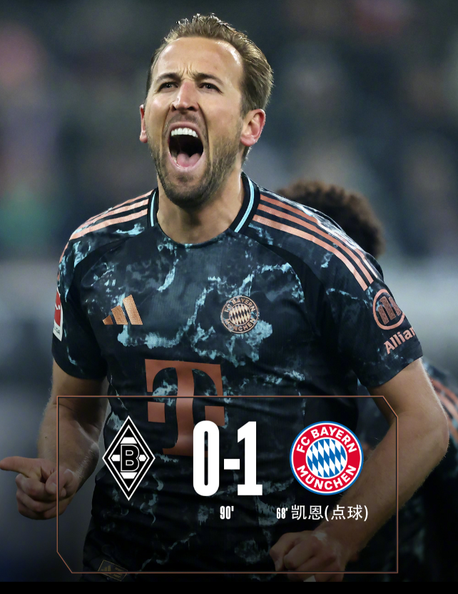 德甲第16轮比赛中,拜仁慕尼黑客场挑战门兴格拉德巴赫。比赛中,奥利塞制造了点球机会,凯恩主罚命中,为拜仁取得领先。萨内错失了一次空门机会,尼古拉斯的多次精彩扑救确保了门兴球门不失。最终,拜仁凭借凯恩的点球,以1-0小胜门兴。