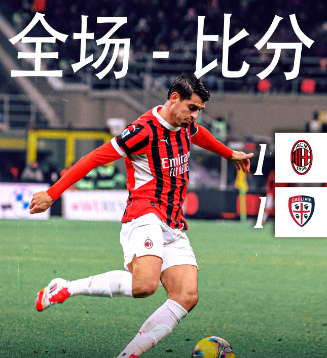 意大利足球顶级联赛第20轮的比赛中,AC米兰主场迎战卡利亚里。上半场双方均无建树。下半场,普利希奇的射门击中立柱,莫拉塔补射打破僵局。然而,卡利亚里迅速反击,佐尔泰亚的射门被迈尼昂扑救失误,卡利亚里将比分扳平。终场前,亚伯拉罕获得单刀机会,但射门被扑出。最终,米兰以1-1战平卡利亚里。