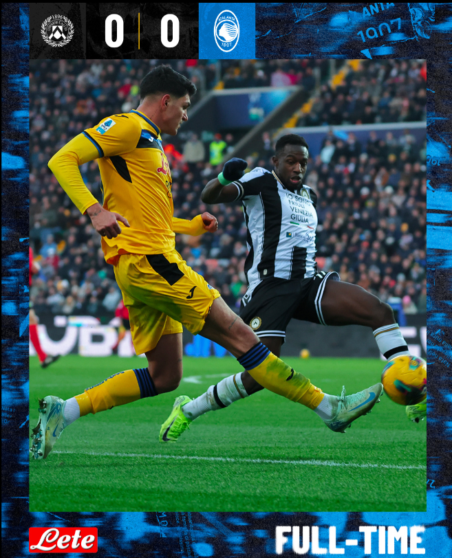在另一场意甲第20轮的比赛中,乌迪内斯主场迎战亚特兰大。双方经过激烈的对抗,均未能攻破对方球门。尽管两队在场上创造了一些得分机会,但都未能把握住。最终,比赛以0-0的比分结束,双方各取一分。