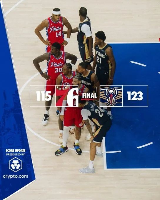 近日费城115-123不敌鹈鹕,后者没胖虎莺歌琼斯墨菲等主力核心球员,此役乔治罕见爆发贡献25分11板5助2断。