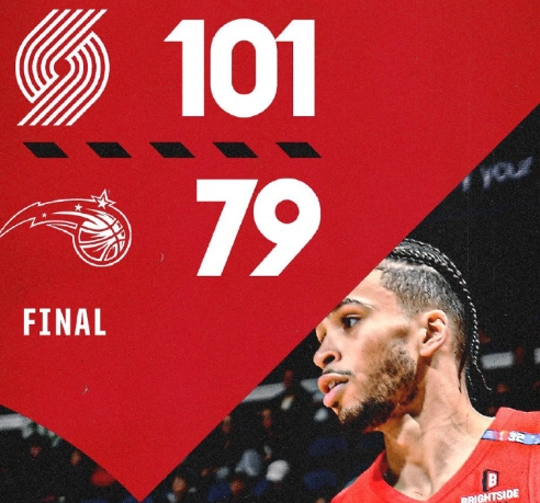 最终,随着比赛时间的流逝,魔术队以79-101的比分不敌开拓者队,遗憾落败。