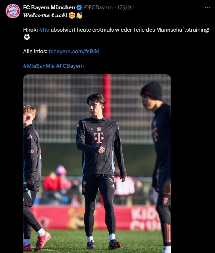 nba直播讯 拜仁在本轮德甲对阵不莱梅的赛前进行了合练,两位伤员回归。据拜仁官网介绍,日本新援伊藤洋辉参加了球队合练,这也是他自去年遭遇跖骨骨折后首次回归合练。