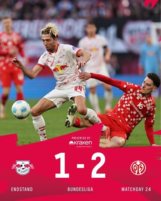 北京时间3月1日,德国足球甲级联赛第24轮,RB莱比锡主场迎战美因茨。哈维-西蒙斯开场闪击,阿米里推射破门扳平比分后又助攻伯卡特反超比分,随后伯卡特射门中柱。最终,RB莱比锡主场遭逆转1-2不敌美因茨。