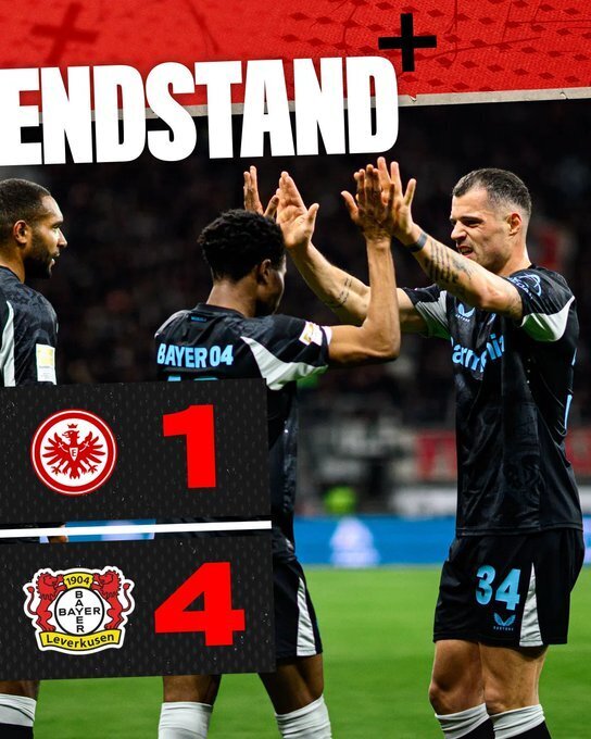 比赛中,内森-特拉弧顶调整低射破门率先拔得头筹,穆杰莱门前抢射破门将比分扩大,格里马尔多倒三角传中,希克跟进推射也完成破门,穆杰莱回传门将失误送出大礼,埃基蒂克破门扳回一城。下半场阿莱士-加西亚外围跟进一脚凌空弹射将比分锁定。全场战罢,最终法兰克福1-4不敌勒沃库森。
