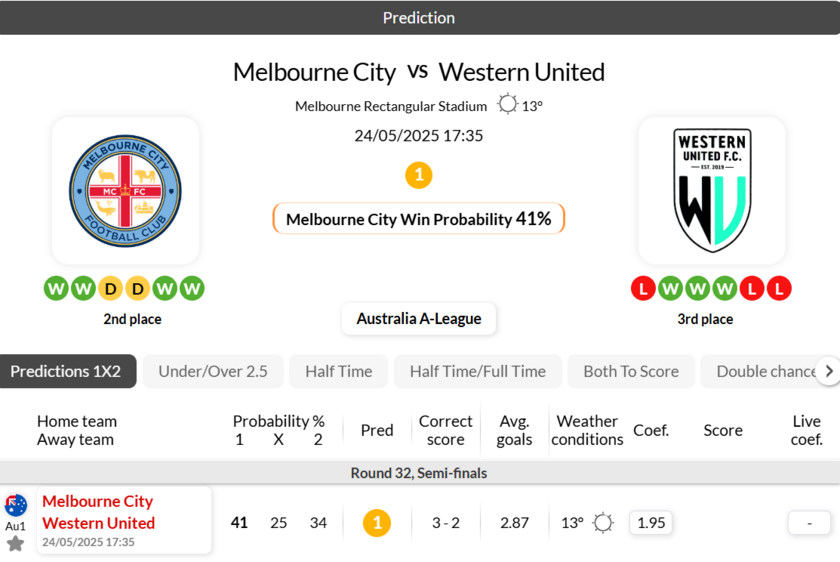 - Melbourne City have won all of their last 5 matches against Western United in A-League.