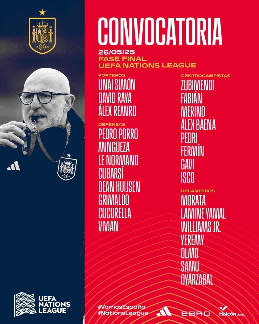 nba直播讯 北京时间5月26日,西班牙国家队公布新一期国家队球员名单,亚马尔领衔,佩德里、加维、莫拉塔、怀森入选,33岁伊斯科回归。本期西班牙国家队将出战下月进行的欧国联比赛,西班牙将于北京时间6月6日凌晨2点45对阵法国队,另一场半决赛是德国vs葡萄牙。