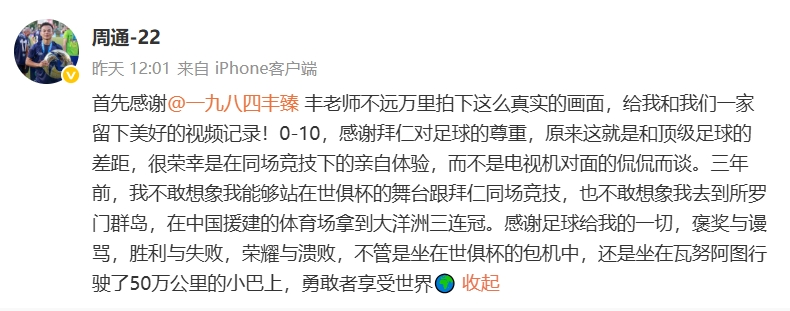感谢足球给我的一切,褒奖与谩骂,胜利与失败,荣耀与溃败,不管是坐在世俱杯的包机中,还是坐在瓦努阿图行驶了50万公里的小巴上,勇敢者享受世界🌍