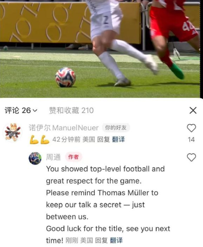nba直播讯 北京时间6月17日,周通在社交媒体上谈论0-10拜仁的赛后总结,诺伊尔现身评论区评论。