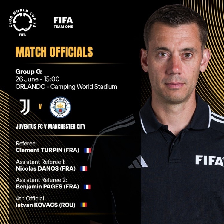 nba直播讯 北京时间6月26日,世俱杯G组小组赛第三轮,尤文图斯vs曼城的强强对决裁判名单出炉,由法国名哨克莱门特-蒂尔潘执法。