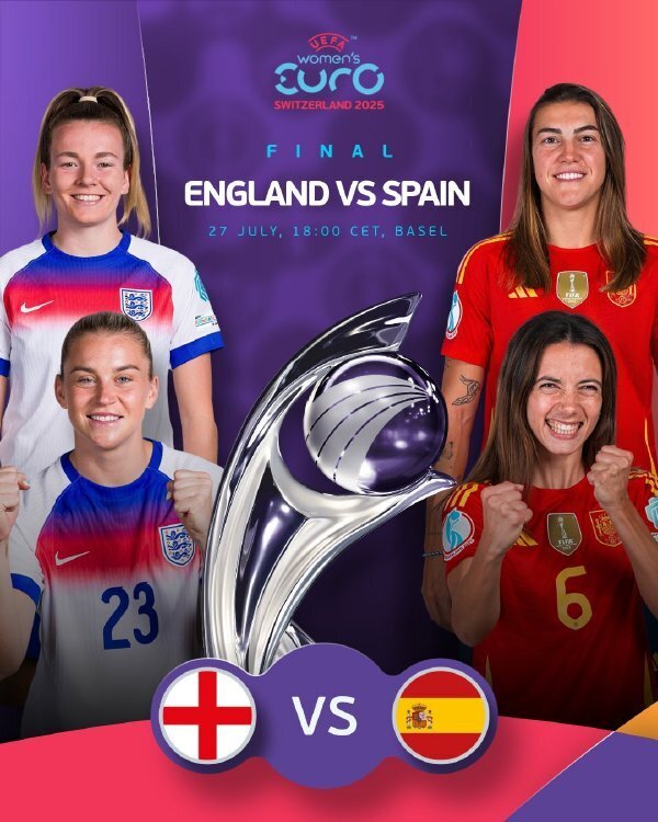 2025女足欧洲杯决赛将在7月28号00:00,也就是今晚24点开战!在瑞士的圣雅各布公园体育场由欧洲杯卫冕冠军英格兰女足和世界杯冠军西班牙女足展开巅峰对决。