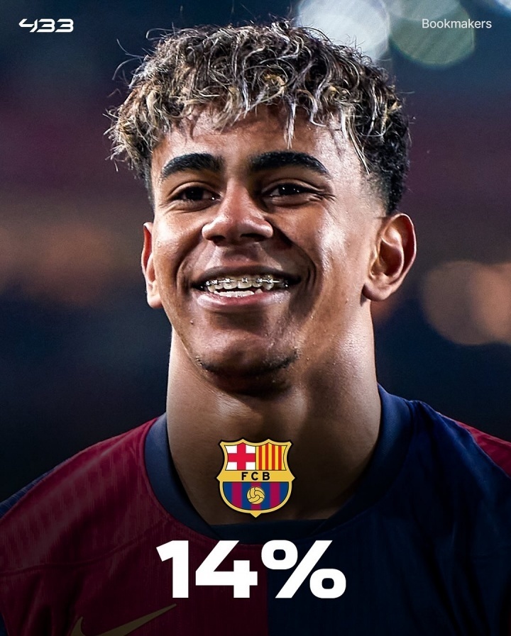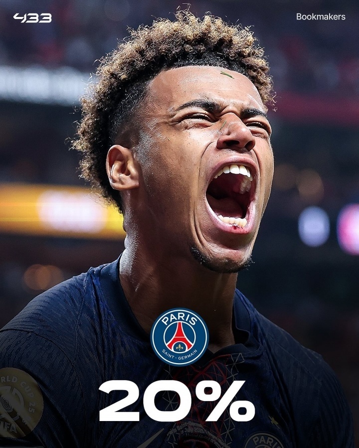 nba直播讯 北京时间7月26日,外媒433根据相关机构赔率,列出了新赛季欧冠夺冠概率前5,巴黎以20%夺冠概率领跑,利物浦17%紧随其后,西甲双雄巴萨、皇马均为14%,阿森纳12%。