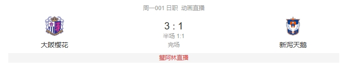 nba直播讯 北京时间8月10日,日本职业联赛J1联赛第25轮,大阪樱花主场迎战新潟天鹅。比赛刚开始,新潟天鹅由堀米悠斗率先破门。随后大阪樱花展开反击,卢卡斯-费尔南德斯送出助攻,帮助中岛元彦扳平比分,半场1-1结束,下半场,本间至恩助攻卢卡斯-费尔南德斯完成破门反超比分2-1!比赛尾声,新潟天鹅后防线藤原奏哉不慎自摆乌龙,为大阪樱花杀死比赛悬念!最终,大阪樱花3-1新潟天鹅。