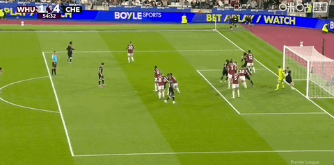 第54分钟,切尔西左路角球传中,西汉姆门将赫尔曼森出击摘球脱手,凯塞多外脚背垫射空门,切尔西4-1领先。
