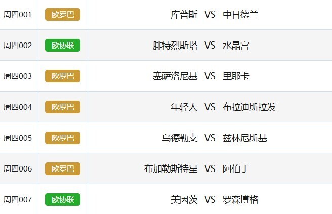 3️⃣周四(8月28日)待开售场次有7场,包括5场欧罗巴资格赛和2场欧协联资格赛。