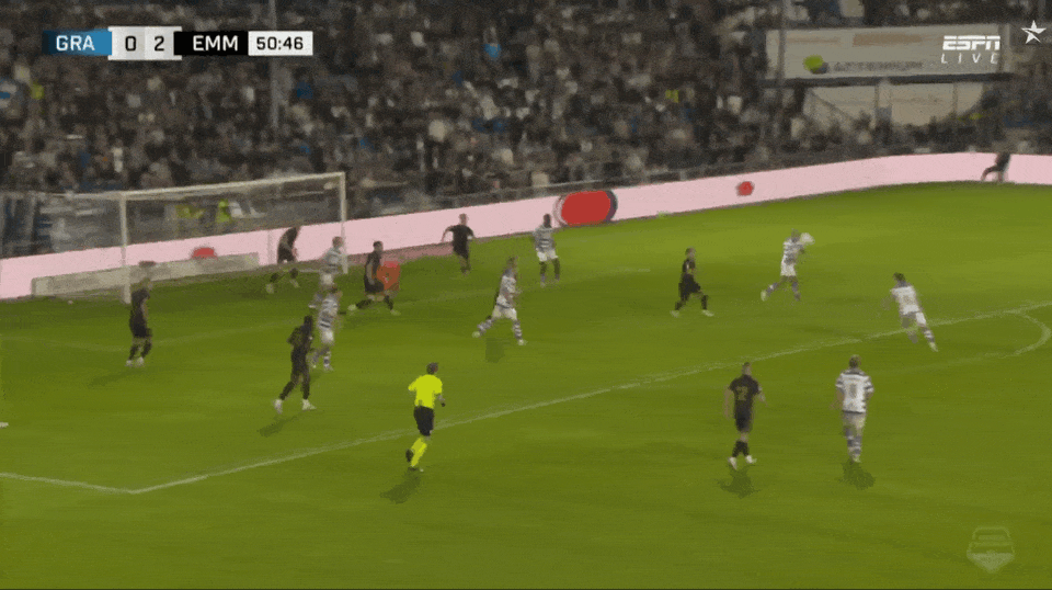 第8分钟,阿马丁角球再送助攻,拉森回头望月破门,埃门2-0领先。