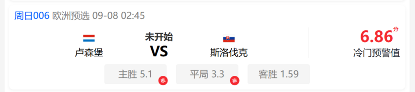 周日006 世界杯预选赛 2025-09-08 卢森堡(+1) VS 斯洛伐克