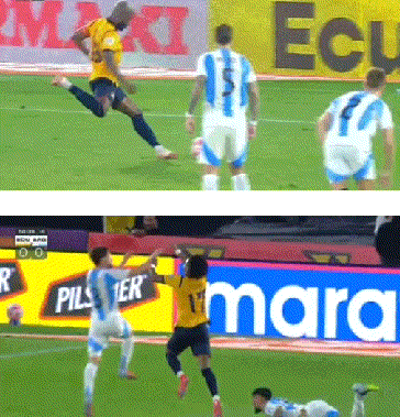 比赛伊始就充满悬念。第12分钟,厄瓜多尔队普拉塔曾攻破对手球门,但因越位在先被判无效。第31分钟,场上出现重大转折——阿根廷中卫奥塔门迪从身后推倒瓦伦西亚,被直接红牌罚下,导致阿根廷被迫少一人作战。上半场补时第13分钟,塔利亚菲科在禁区内犯规送出点球,瓦伦西亚主罚命中,帮助厄瓜多尔取得领先。