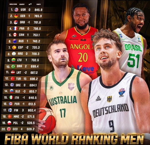 nba直播讯 FIBA官方更新了男篮世界排名,美国队仍然排名第一,德国队升至第二,塞尔维亚队降至第三德国队在此前结束的欧洲杯中夺得冠军,成功反超塞尔维亚来到第二:而欧洲杯亚军土耳其对则是起伏最大的,连升1个位置,来到第十二。