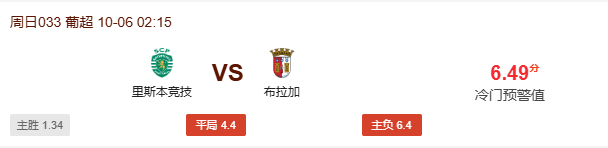 里斯本竞技上赛季主场曾被布拉加逼平过,球队近10次面对对手5胜3平2负,优势不算明显。本场比赛里斯本竞技主场得到1.0的支持升1.25的支持,结合双方联赛的表现来看,有为主队造势之嫌。根据冷门预警模型估算,本场比赛冷门预警值也来到6.49分,此战里斯本竞技主场热度不低,考虑到布拉加遇强则强的属性,本场比赛不妨提防布拉加爆冷不败。
