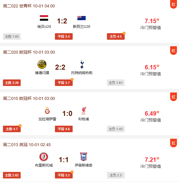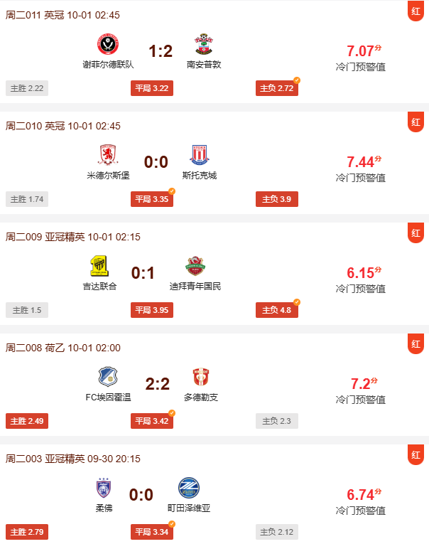 北京时间10月05日,为大家罗列各项足球让球胜平负和足球胜平负的赛事误差较大场次,各位球友敬请留意。