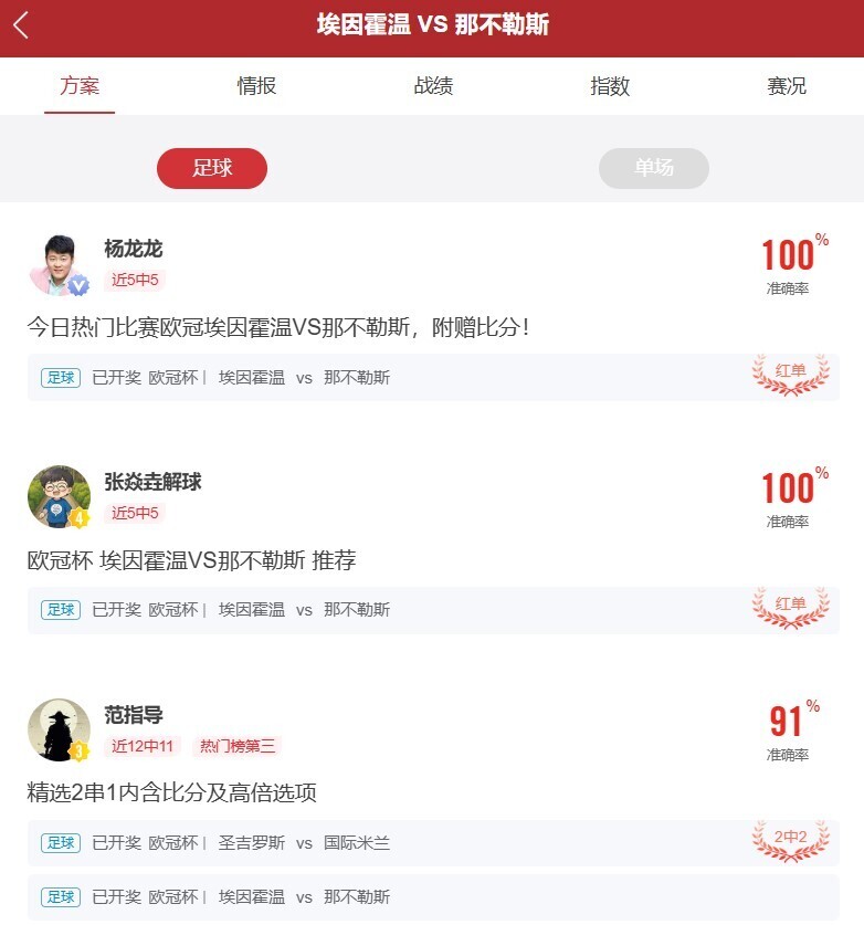 埃因霍温6-2那不勒斯