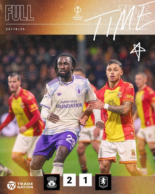 阿斯顿维拉1-2前进之鹰:同样是在欧联杯联赛阶段第3轮,英超劲旅阿斯顿维拉客场挑战荷甲排名第12的前进之鹰。维拉开场第4分钟就取得领先,但随后连丢2球,最终1-2爆冷落败,无缘欧联杯的3连胜。