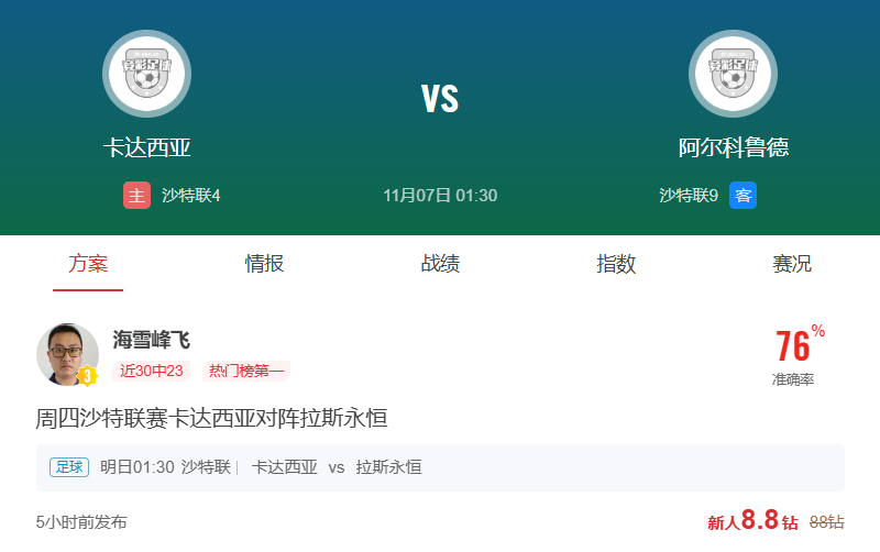 周四007沙特联推荐:卡达西亚VS拉斯永恒