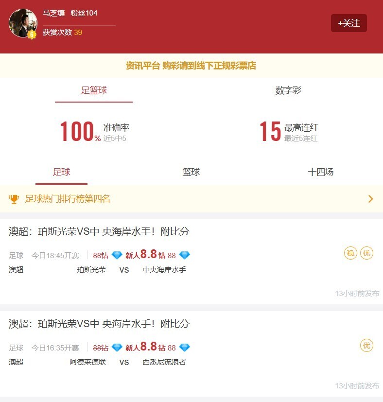 珀斯光荣 VS 中央海岸水手