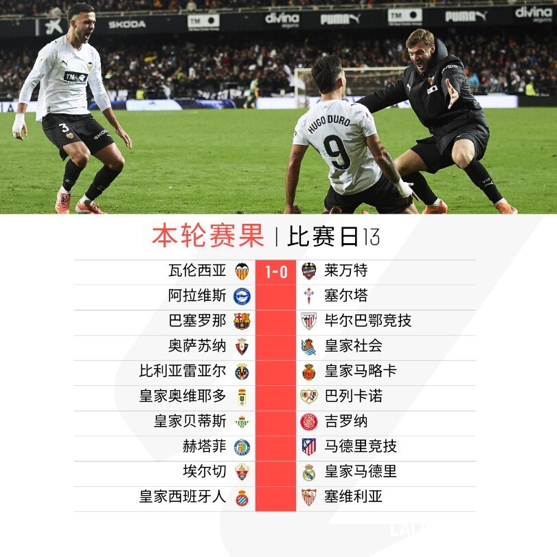 巴伦西亚1-0小胜莱万特,终结七轮不胜,虽仍居第15位,但士气得到提振。